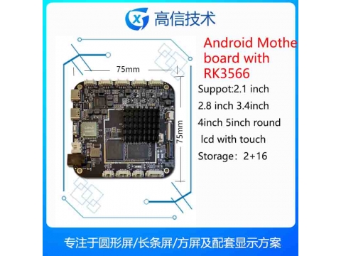 支持高信(GX)系列圆屏和方形显示屏,安卓主板,匹配 3.4寸800*800分辨率,4寸720*720分辨率,5寸1080*1080分辨率,带电容触摸,多点触摸,GFF结构,可以配方形显示屏 3.95寸 mipi接口,7.6寸mipi接口.主控芯片是RK3566,内存,2+16G
