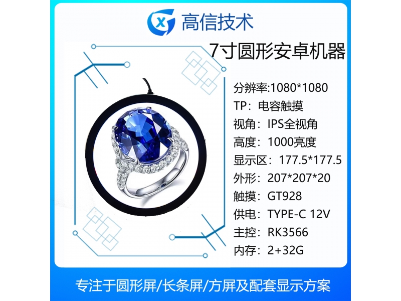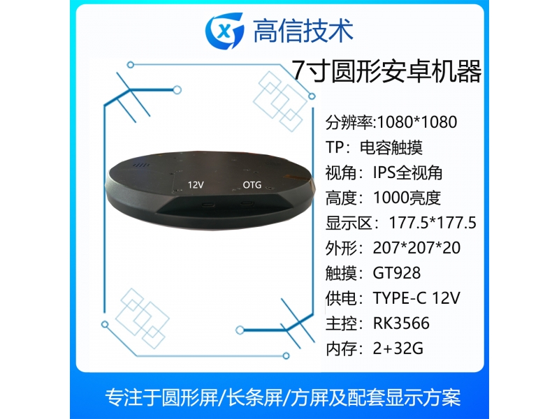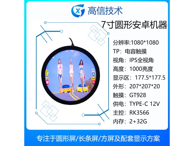 • 7寸圆屏显示屏安卓整机,RK3566主控,2+32内存,自带信发